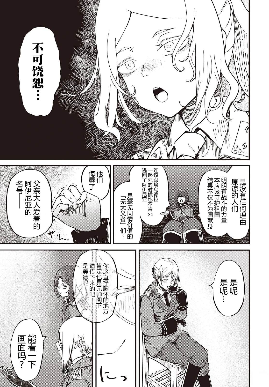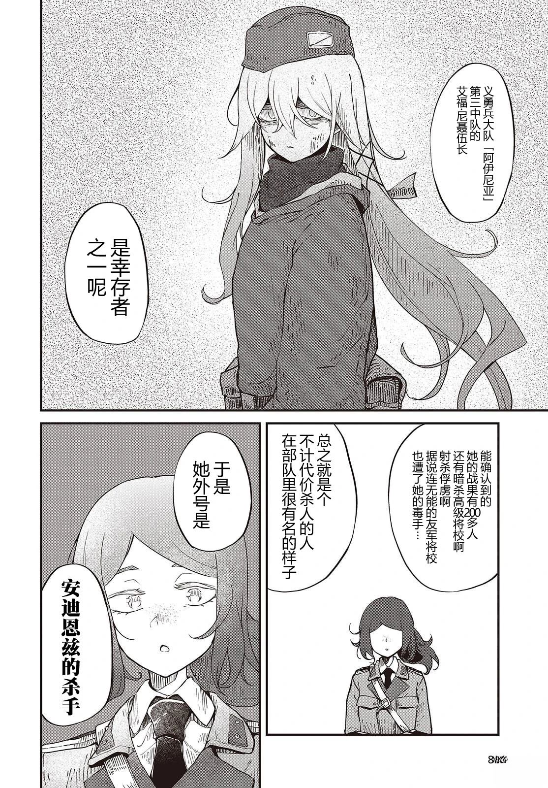 战争结束三年。义勇兵们还没有恢复日常生活。 被称为「阿登齐的杀手」,在战场上被敬畏的少女艾福也过著没有去处的日子。 一位传教士向这样的她伸出了手。那双眼睛又妖艳又温暖——。 「我会让你幸福的。绝对……」